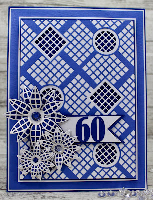 I added the lattice flowers cut in the navy with white lattice and the with love tag using my bold numbers for the 60.